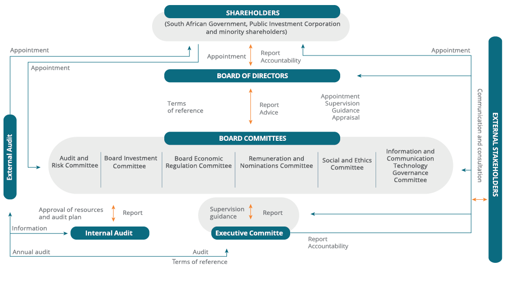 Airports Company South Africa’s approach to corporate governance is based on six fundamental principles: accountability, transparency, responsibility, independence, ethical fairness and social development. The Group acknowledges that its dual purpose – to both serve its customers profitably through world-class airports and fulfil a social development role as an ancillary body of government in line with National Development Plan objectives – requires that it is fully committed to the effective implementation of King IV principles throughout the organisation.